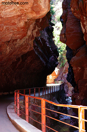 Dès l'entrée des gorges, un pont lugubre surplombe l'abîme.