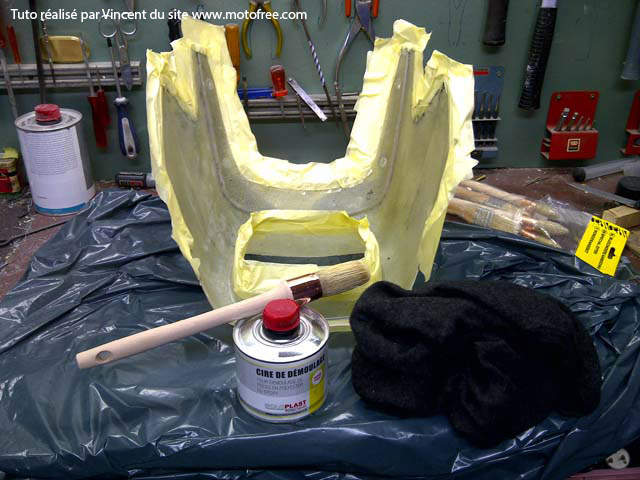 Il faut alors isoler les bords du moule pour éviter que la pièce carbone ne "prenne" dans les fibres de verre périphériques.